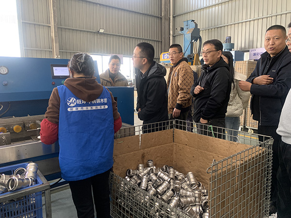 管件展示:考察團(tuán)詳細(xì)查看了包括法蘭、彎頭、三通及先進(jìn)的卡壓式管件在內(nèi)的全套連接系統(tǒng),對產(chǎn)品的精湛工藝與完善體系表示贊賞。